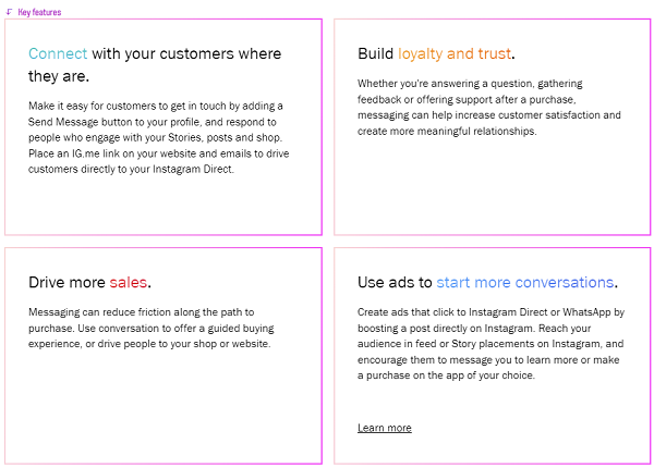 According to Instagram for Business, “Adding new business messaging features to monetize the user shift towards messaging, and away from social apps”