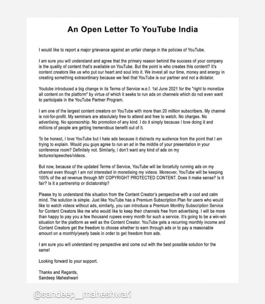 After YouTube notified of its policy changes, Sandeep Maheshwari questioned YouTube openly stating the unfair clauses. Just after this tussle, he quickly formed his new channel SMtv where there’s no advertising and subscription.