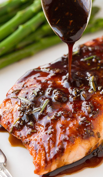 Combine balsamic vinegar and brown sugar, brush on salmon, then bake or grill until flaky.